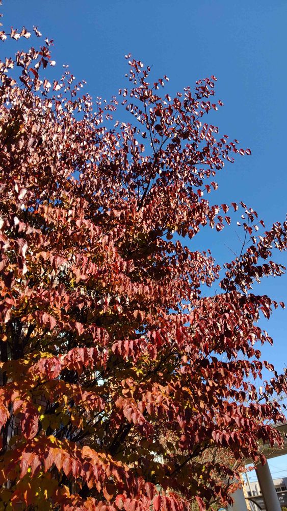 あななさんのお出かけ先,紅葉した葉っぱ,真っ青な空の投稿画像