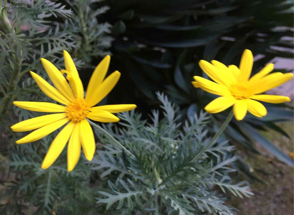 庭でユリオプスデージーのお花が咲いています✨地植えにして2年くらい経ち、だんだん大きくなっています✨💕😊