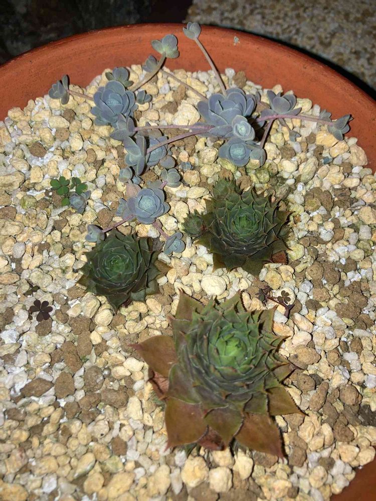 7月の頭に購入して、ちょっと実験用に株分けした、子持ち蓮華とセンペルビウムです