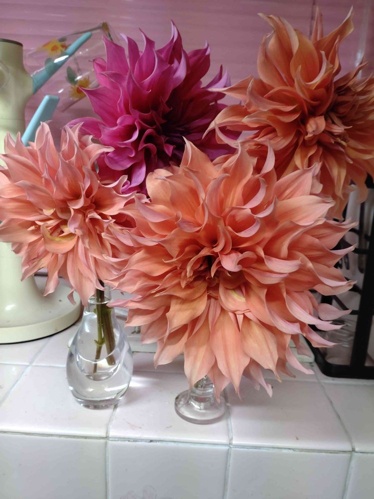 右前と、左後ろが、風でポッキリ折れました。細い茎で頑張っていたから、あと2つカットして、キッチンで楽しみます。肉眼で見る美しいオレンジが出ません。