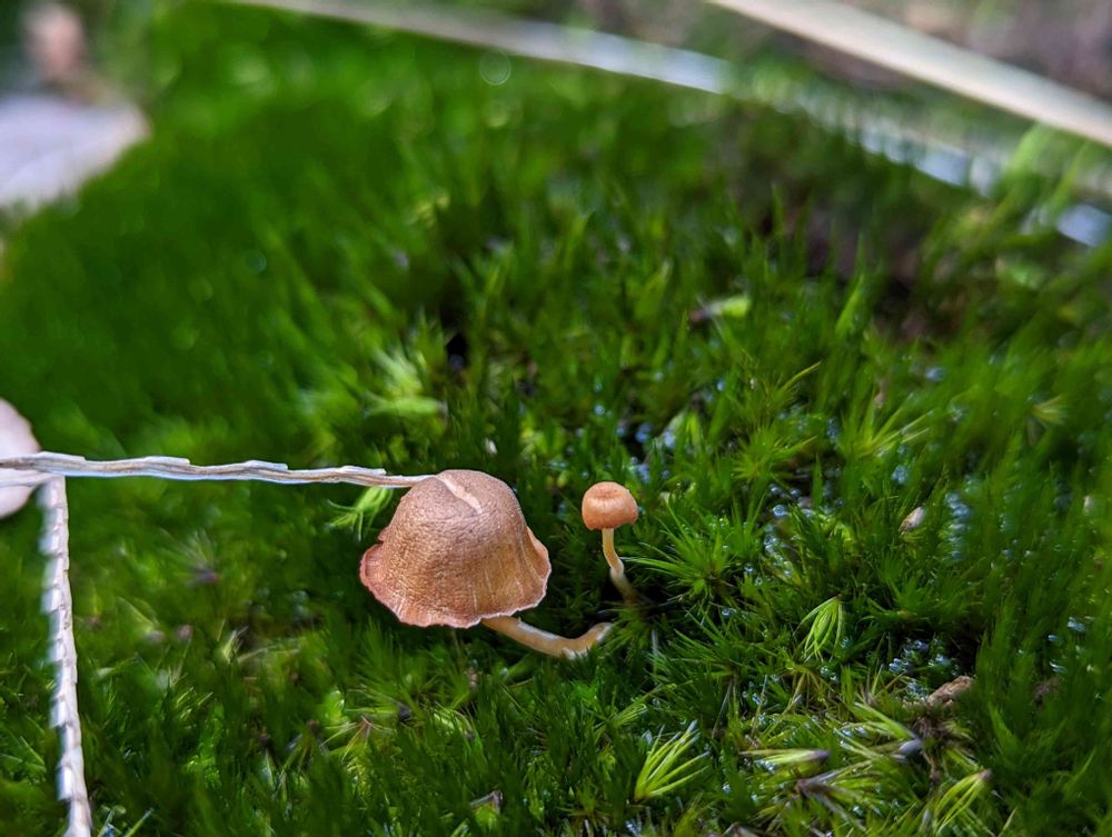 苔とキノコ、仲良しですね(∗ˊᵕ`∗)