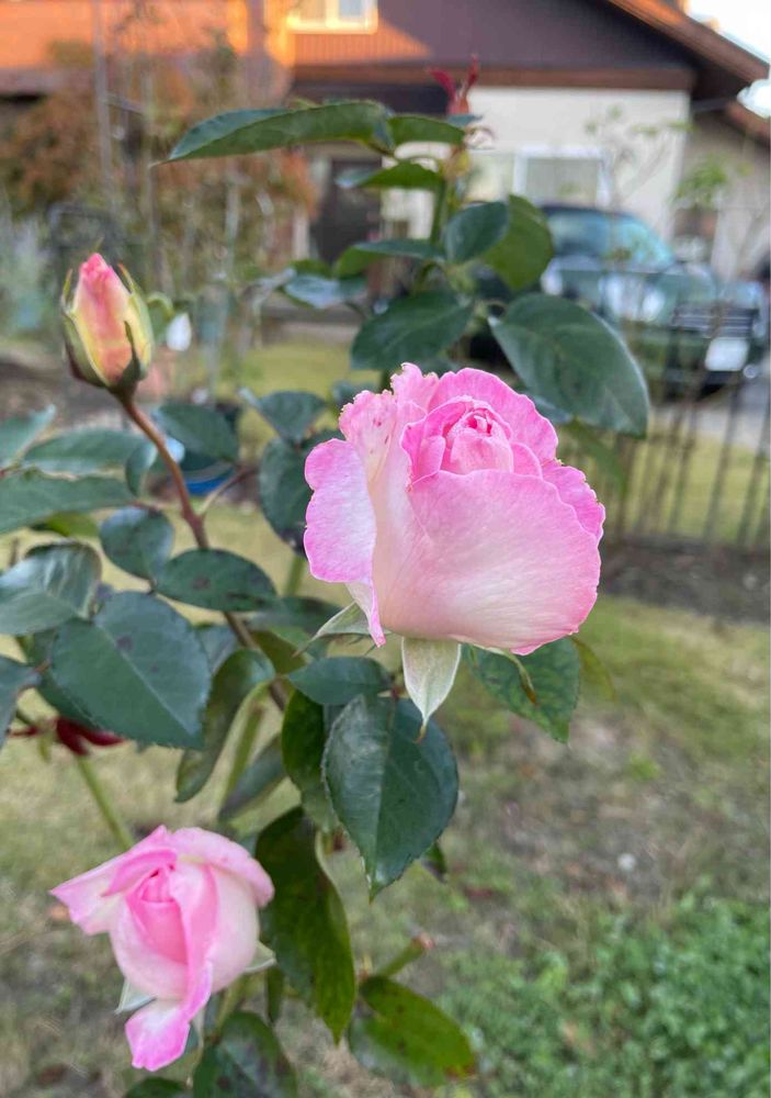 今朝のバラ🌹🌹pic。プリンセスドゥモナコさんキレイに朝の庭に咲いてくれてます。
