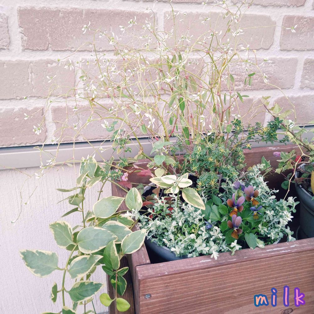 milkさんの小さな庭,ツルニチニチソウ,ユーフォルビア・ダイヤモンドフロストの投稿画像