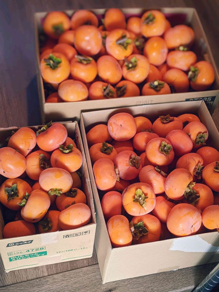 甘柿は1軒約30個を3〜4件軒ずつ、2週間以上配るのも大変でした。主人は柿取りのじいちゃんってこども園の園児に言われるほど毎日😂🤣