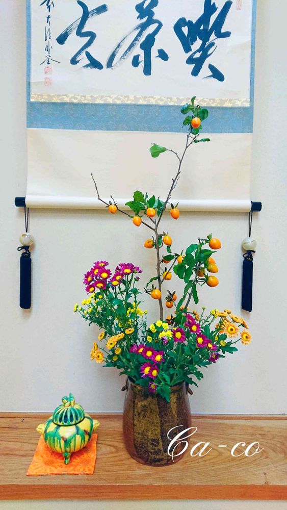 老鴉柿🟠🍃の素敵な生花ですね👏