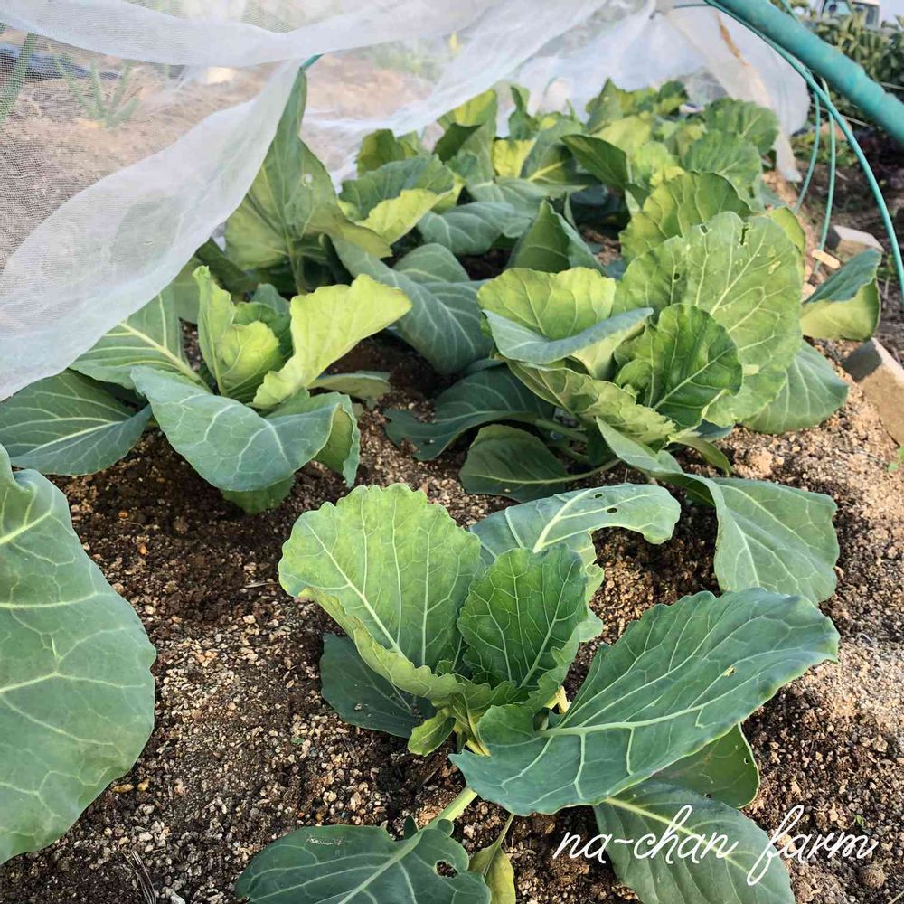 雨が降って、一回り大きくなってたキャベツ🍀追肥と虫さん駆除しました🍀