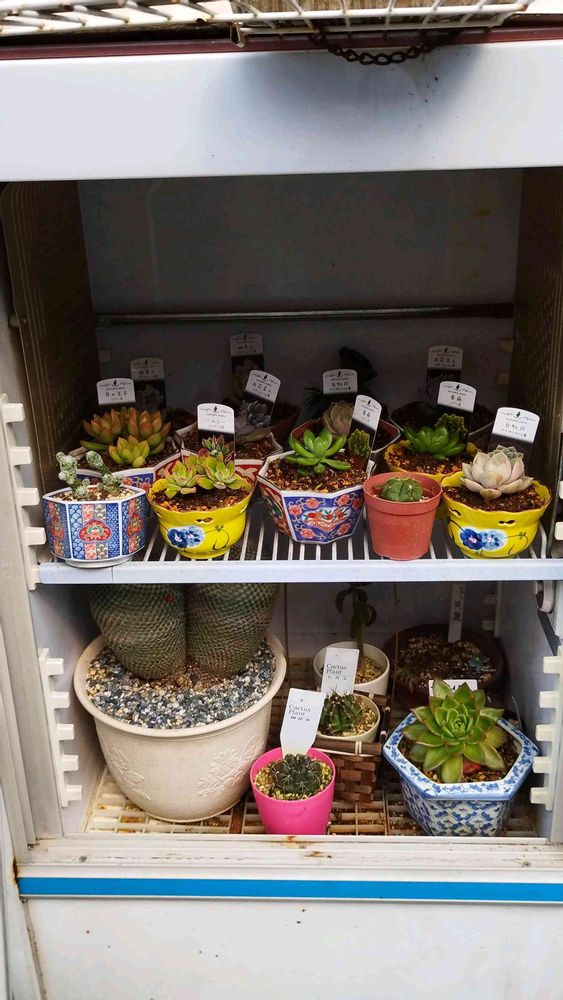 ジモティーで、中古の冷凍ショーケースを買って来て、自称 多肉マンション として活用しています。 冷房熱が逃げないように断熱材で囲んであるし、前面はガラス戸ですから陽光も入るし、夜 ガラス戸を閉めると 少々の寒さも大丈夫そうです。 他にも、冷蔵庫の扉を外してビニール戸に付け替えたもの、そして今は小さな花壇の隅の方に、寒さが苦手な樹木用に上部にコタツを付けた暖房ハウス、を制作中で もう今日には完成させたいと思うので、完成したら又投稿します。