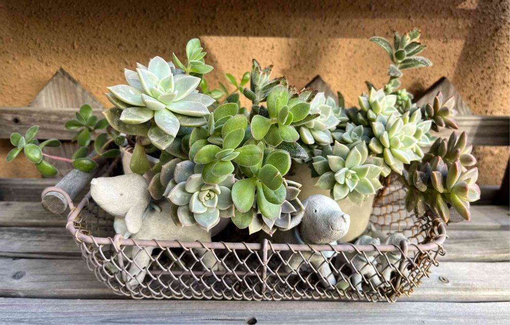 置き物の犬🐕が多肉さんたちに隠れていたので見える所にこんにちは…😊