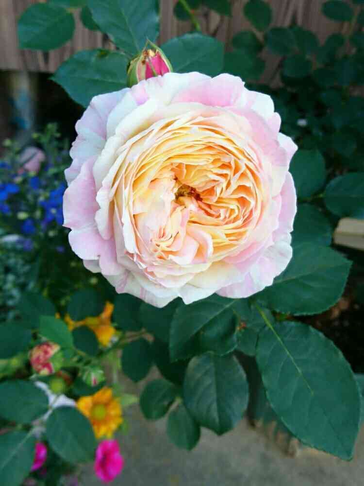 色幅がクリーム色から濃い桃色まで大きい絞りの薔薇ですが、今年の初花はイエロー寄りの優しい雰囲気でした😌❤