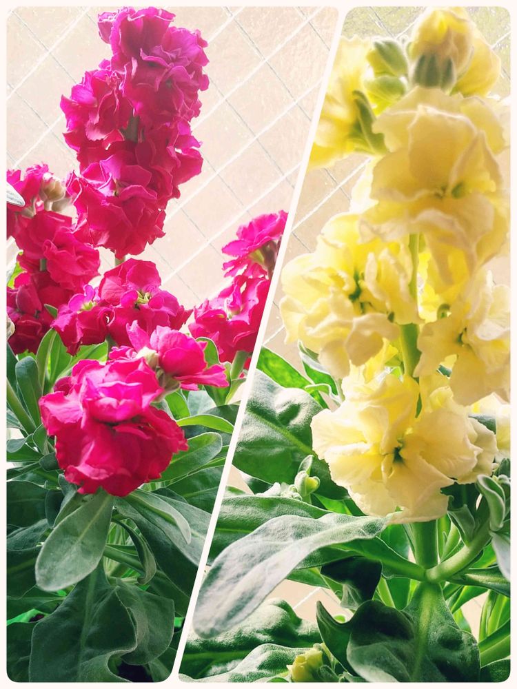 ストックの花色はっきりして良いね👍私は左側の濃いピンク色が大好きです💓♥️❤️