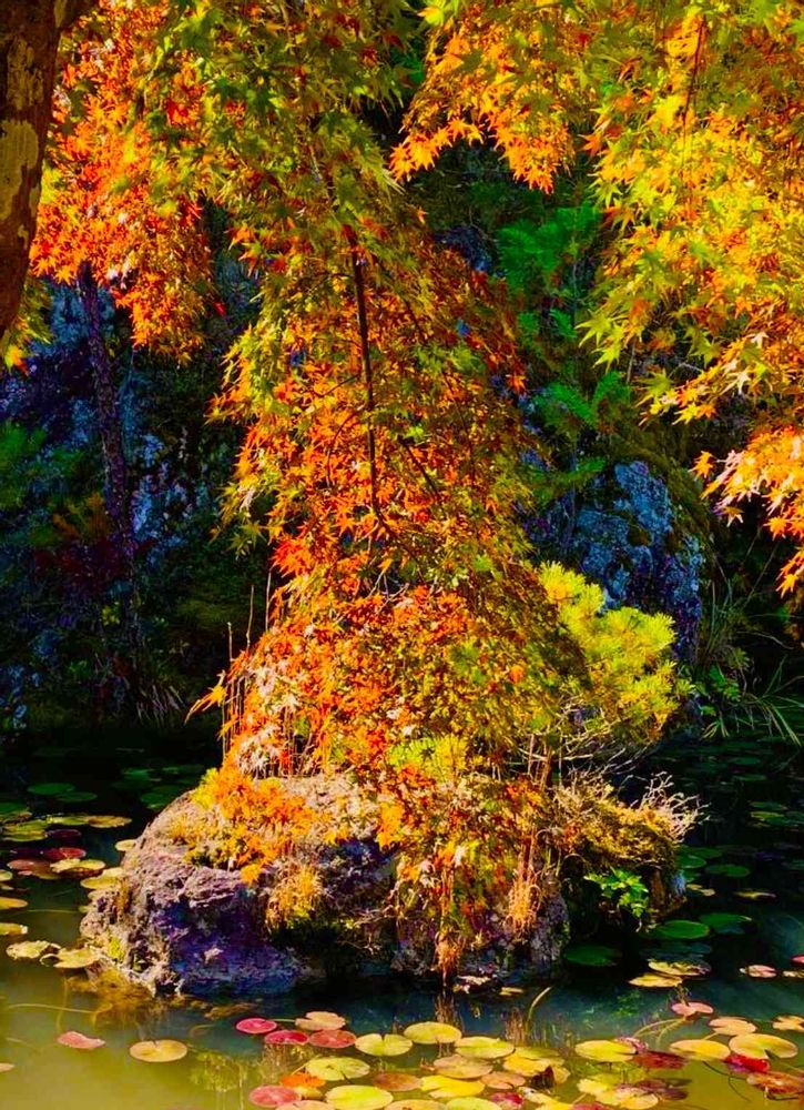 静かな境内、池に泳ぐ鯉、美しい庭園