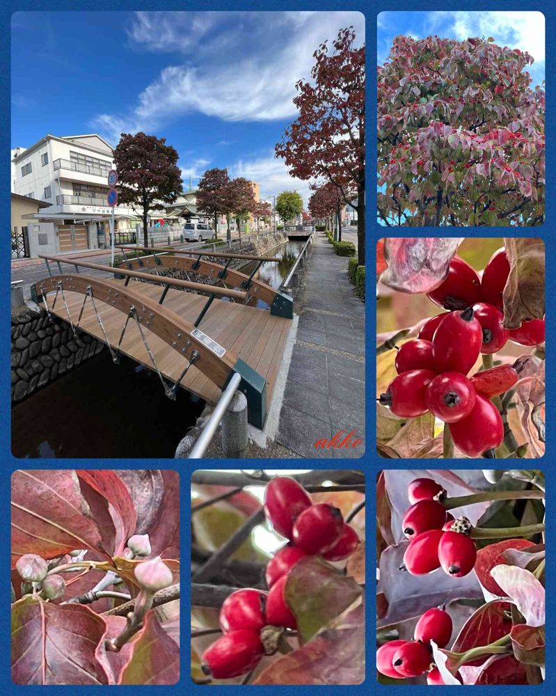 川の両岸に、ずっと植えられていて、紅葉も始まって、葉も花も実も揃ってきれいでした❣