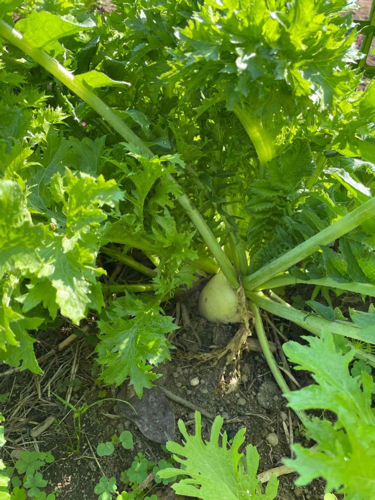 わさび菜の中になんか違うと思ったら大根こんなに大きくなってました🤣