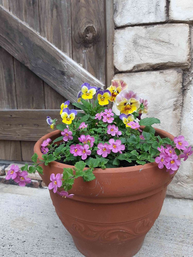 玄関,バコパ,ビオラ イエローブルージャンプアップの投稿画像