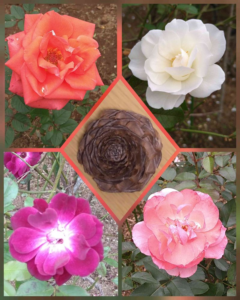 ヒマラヤスギを見上げ‥雄花を見つけ‥果球に出逢い‥薄緑だった果球が段々茶色に大きく育つ♡いつ落ちるんだろうと眺め‥花弁が地面に散ってる姿を見ては裏返しのシダーローズを見つける😍形悪いなって初めての時は思ったのですが‥違う違う‼️熱湯消毒して天日干しすると‥あれよあれよと縮こまっていた花弁が開き出す♡そして素敵なシダーローズに変わる💕