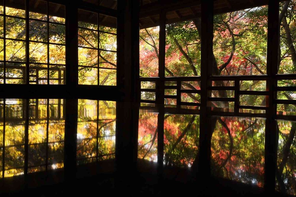 ここも素晴らしい紅葉と机に映された逆さの紅葉が黒に映えて綺麗ですねぇ😻💞