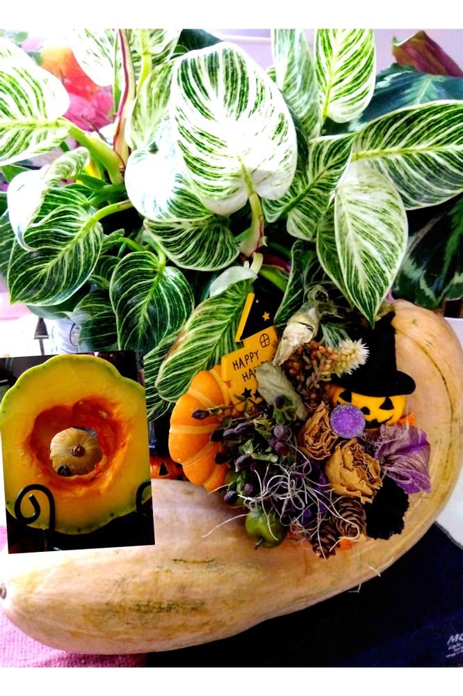窓辺,かぼちゃ,フィロデンドロンバーキンの投稿画像