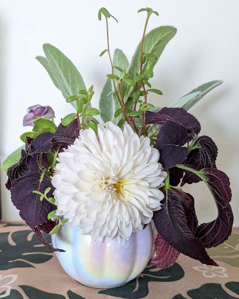 ベランダから伸び過ぎた草花を適当に摘んでずっと水差ししてた中にダリアも仲間入り〜🏵️