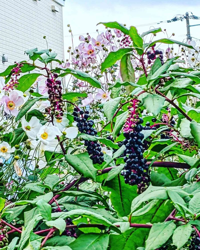 シュウメイギク,ヨウシュ ヤマゴボウ,花散歩の投稿画像