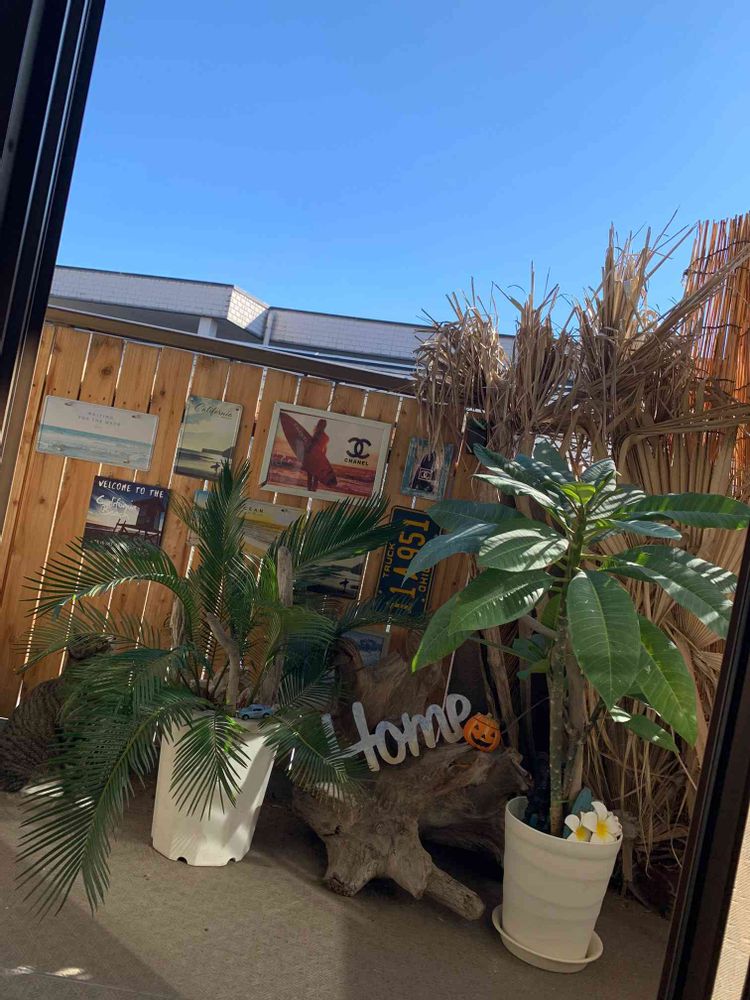 #プルメリア#ソテツ#流木#ハロウィン#ベランダ#青い空#いい天気#ネコ