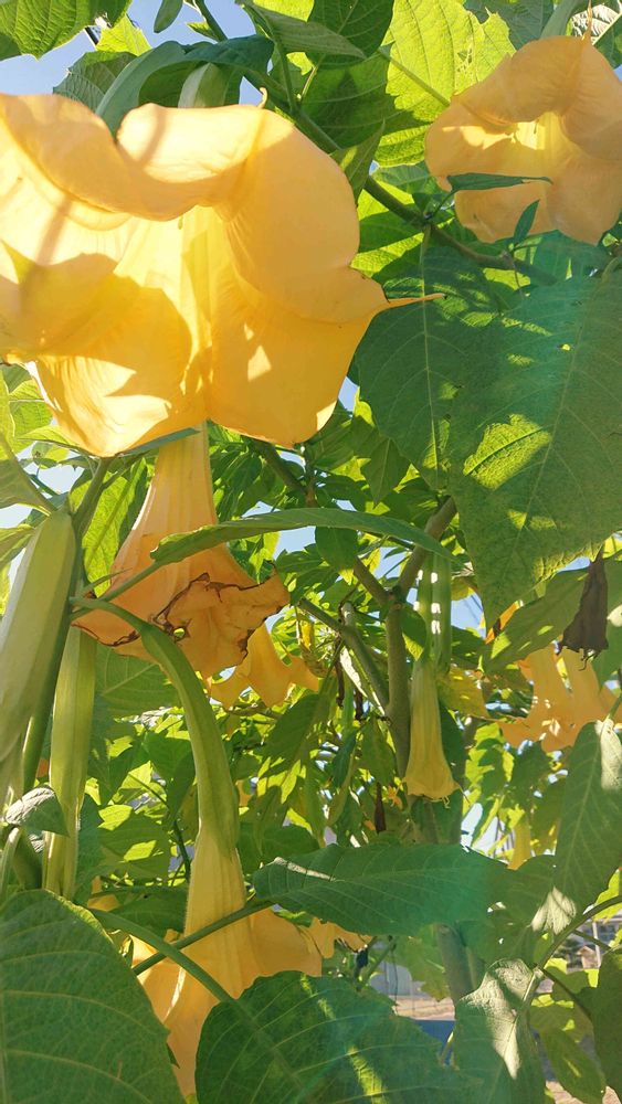 私の好きな色も黄色です。「天使のトランペット🎺」 大きな花ですよね! でも 下向きに咲いてる所が残念なポイント💡
