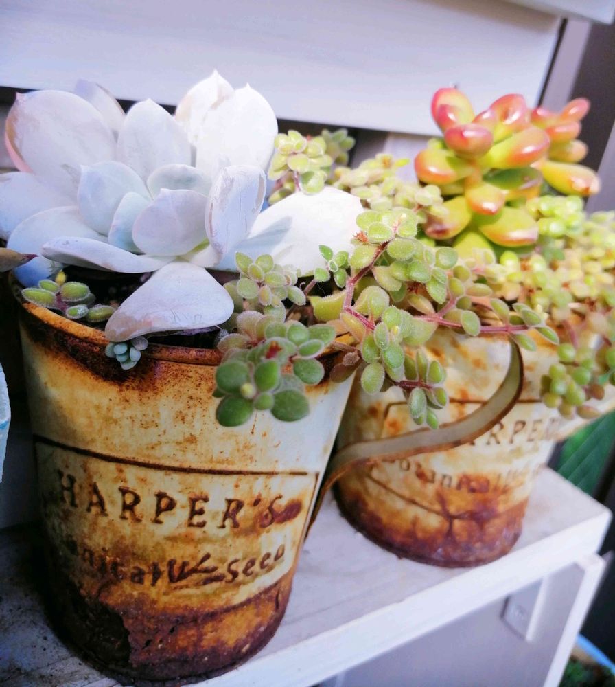 植えてるブリキ缶の下の方が崩れてきてる…😅