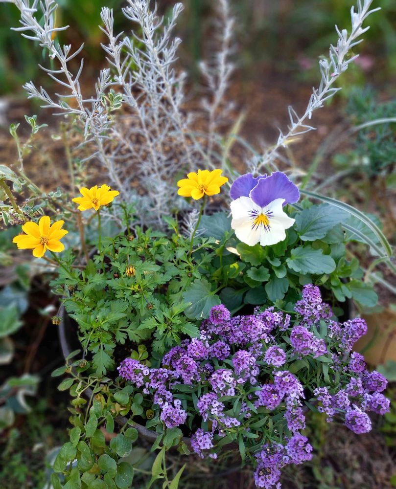 ビデンス🧡パンジー🤍💙とアリッサム💜