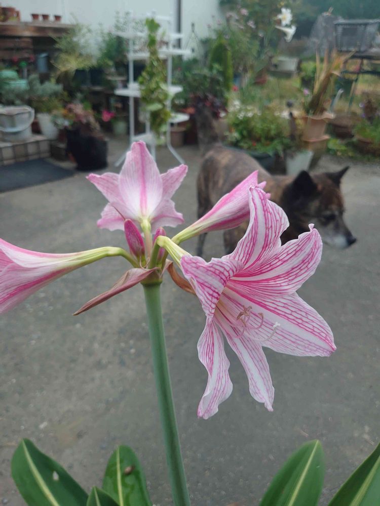 広い庭,シロスジアマリリス,ピンクの花の投稿画像