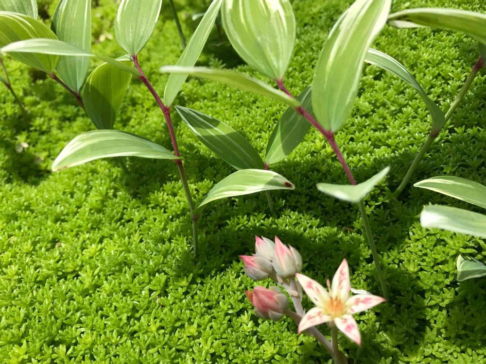 お庭のセダム、苔の絨毯みたい🌱🌱