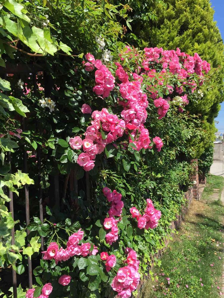 フェンスのバラ2種。フェアリー満開🌹ランブラーは今年は花が少なめ…