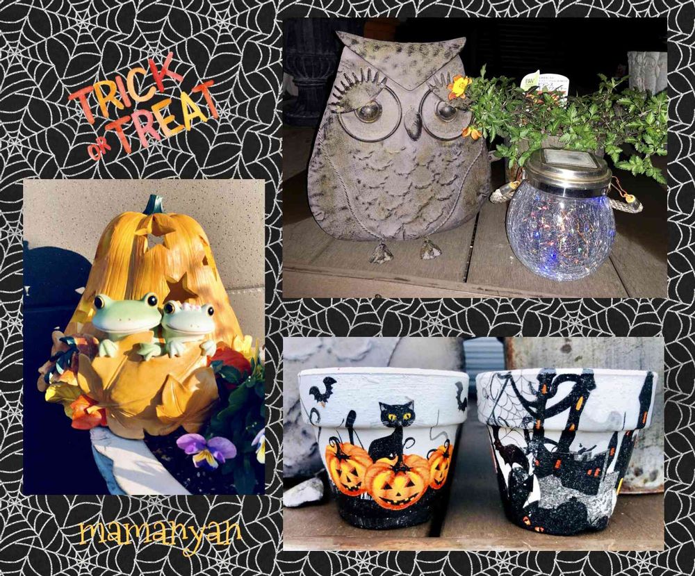 ↘️ハロウィンのリメ鉢はダークでしょ❣️