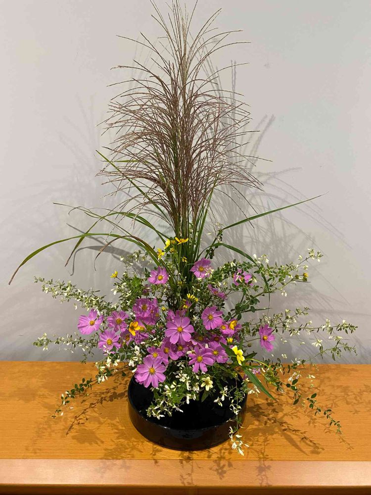 父がやっているちょっとした畑で、今咲いている花達(ススキ・コスモス・ハギ)を使って、テーブル花式にいけてみました。