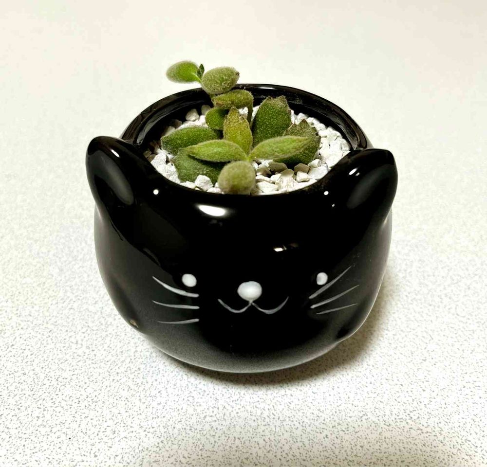 昼休みにネットで見ていた、子猫の爪が帰りのホームセンターで偶然ありましたので、またもや衝動買い😅ダイソーで売っていたニャンコ鉢にホワイトゼオライトで仕上げました✨