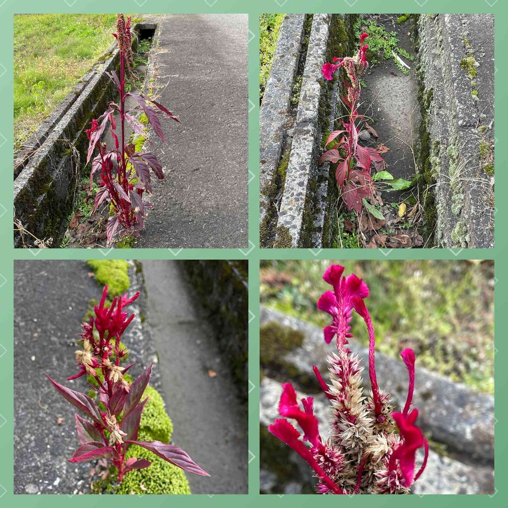 散歩の途中側溝の溝と中にケイトウが咲いていました👍🎶❣️