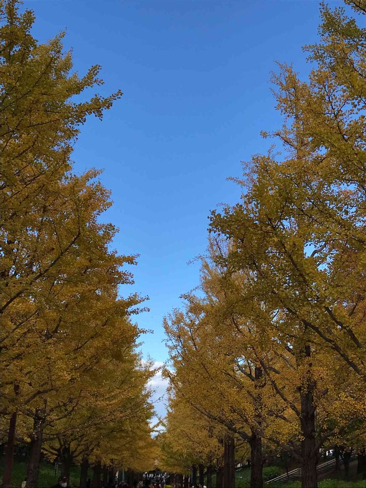 スカッ晴れの銀杏並木☀️気持ちいいで〜す💛