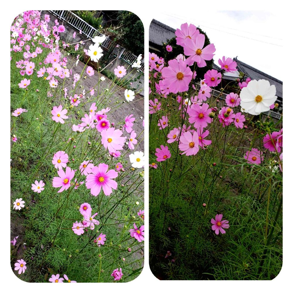 このコスモスは隣の畑に植えられていてごみ捨ての途中パシャリ📱しました☺️