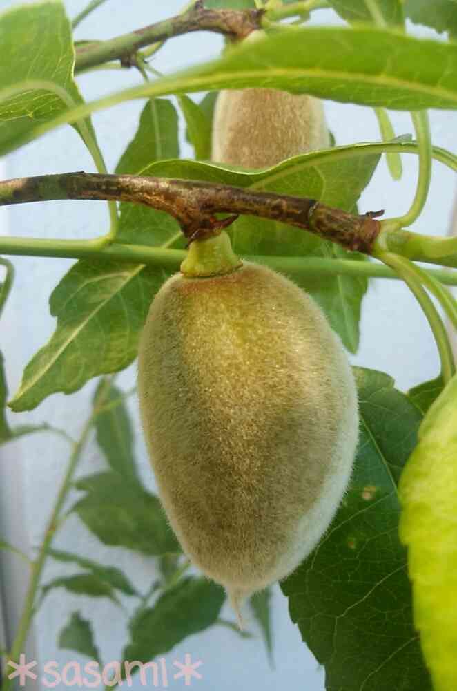 あーもんどの実ってこんなんなんですね、、知らなかった。