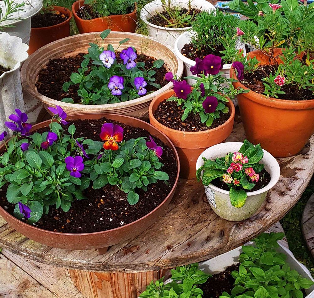 陽が低くなりうちの庭は日陰がほとんどになり、畑にお花今年もお引っ越し😁