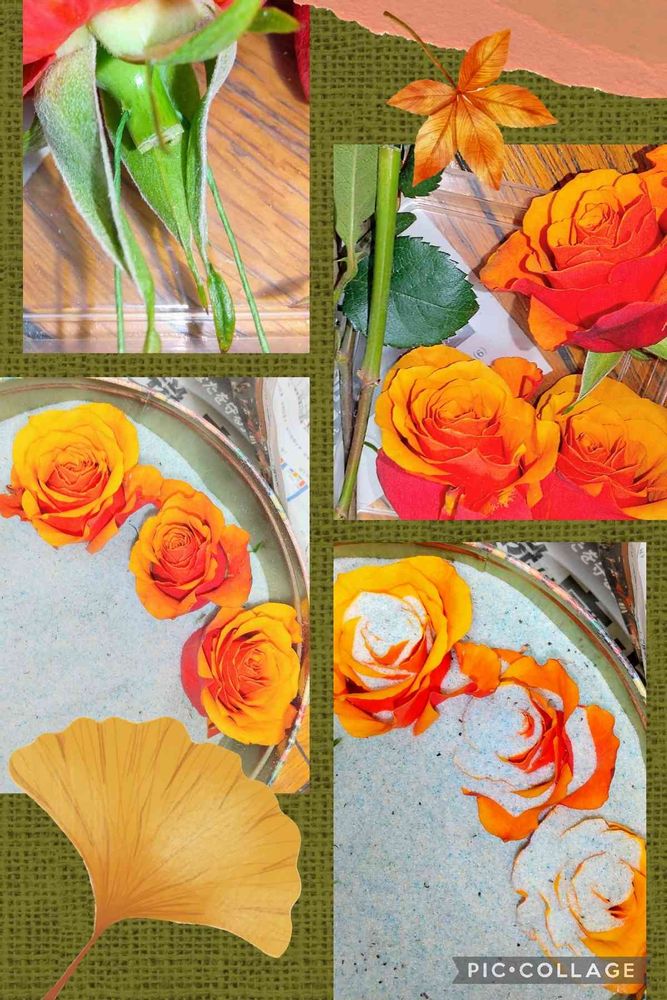 今回のはバラの形を少しでも綺麗に整えたいので、長い茎(60センチほど)はバッサリ✂