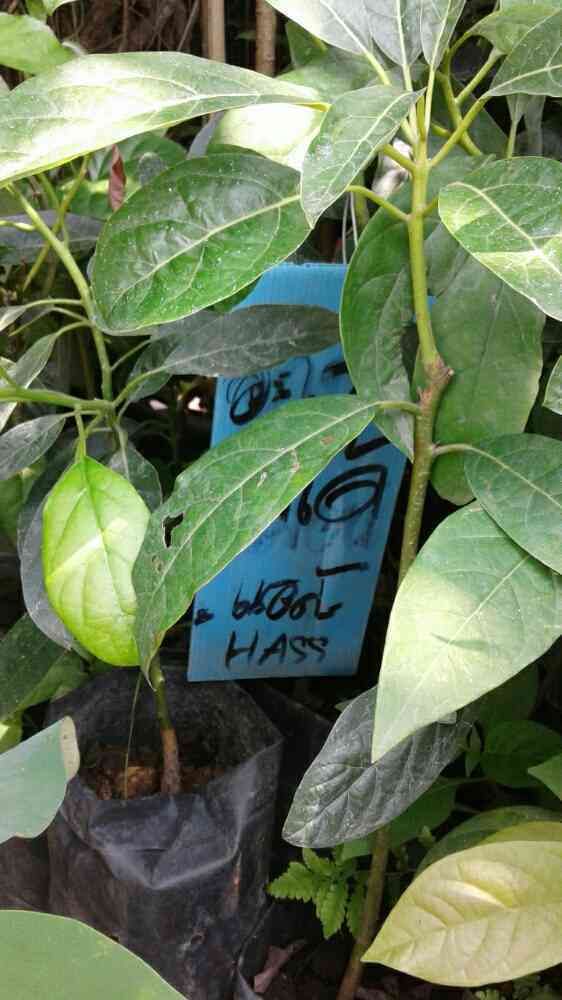 昨日ブラジルの園芸家の方をチェンマイ市内のカムティアン園芸市場にご案内したついでで見付けたアボカドのハス種。品種物の割には安いので購入しました。