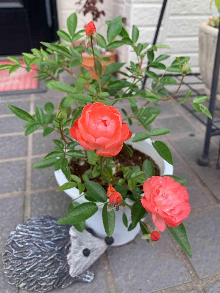 先日、ご近所さんから、挿木をしたミニ薔薇を頂き、コロンと可愛いカップ咲きです。色も初めより濃い色になって来ました🤗🌸🌸
