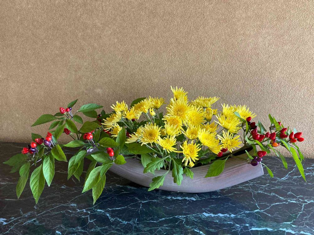 我が家は、今は、クジャクアスターを玄関に挿しています。