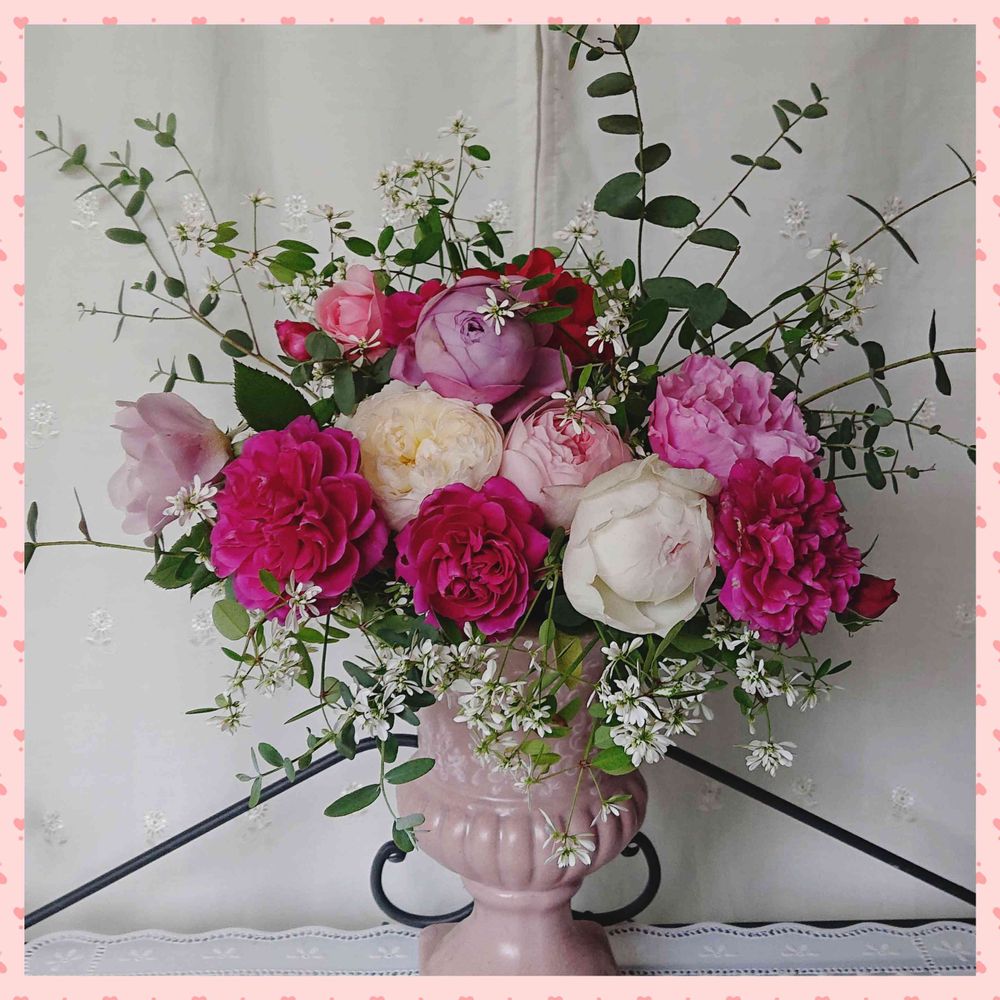お庭の薔薇🌹でアレンジできて♡⁺。.(*˘( ˃ ᵕ ˂,,*).。⁺♡幸せ💗