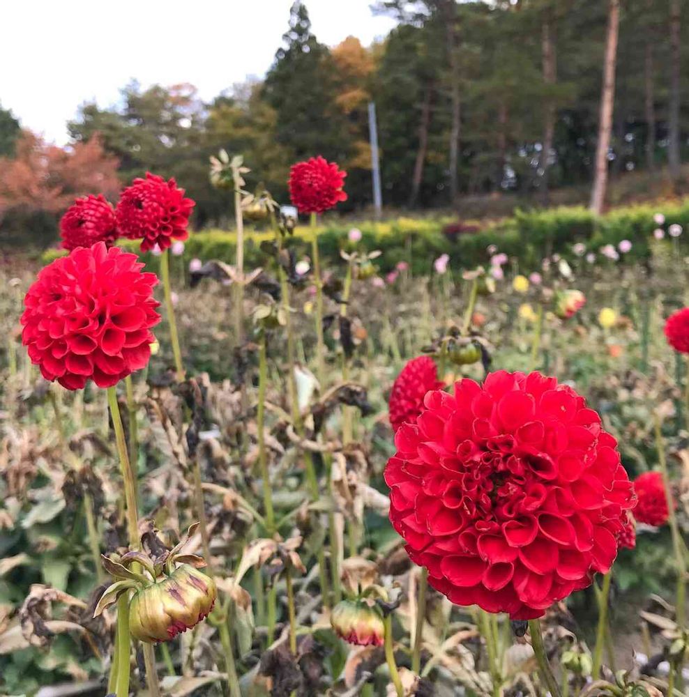 近くの山の紅葉と沼のあるダリア園の素晴らしい景色は、絶妙なバランスで成り立っていたんですね😌