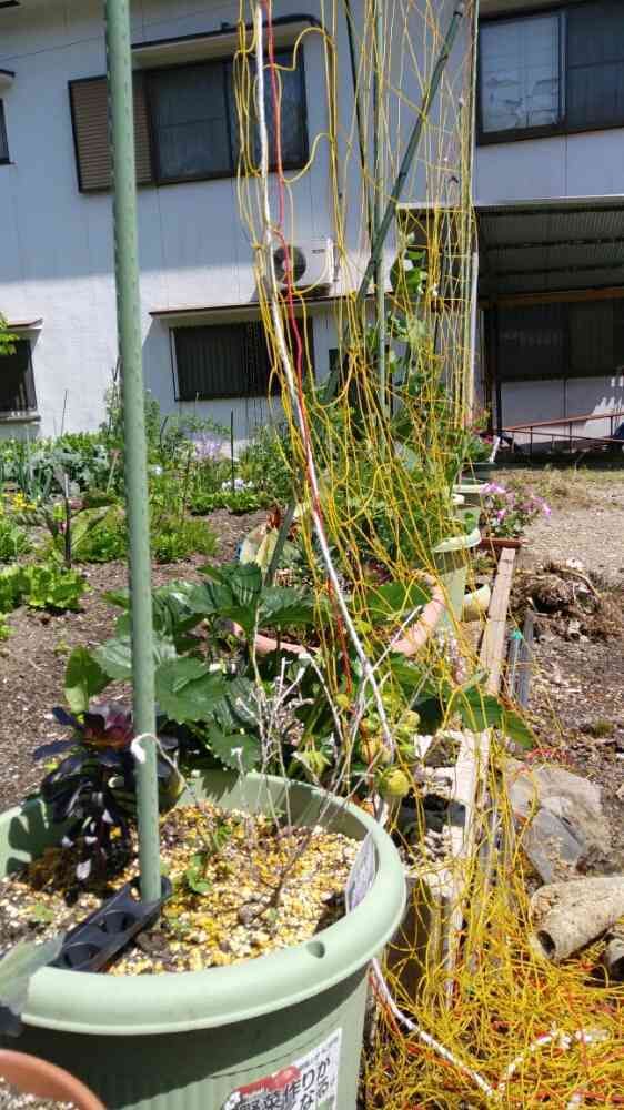雑だけど、鹿よけネット張るのに、支柱止めがついた鉢を買って、花や低木など植えてます❤杭を打つ力がないので市販のものに頼ってます。