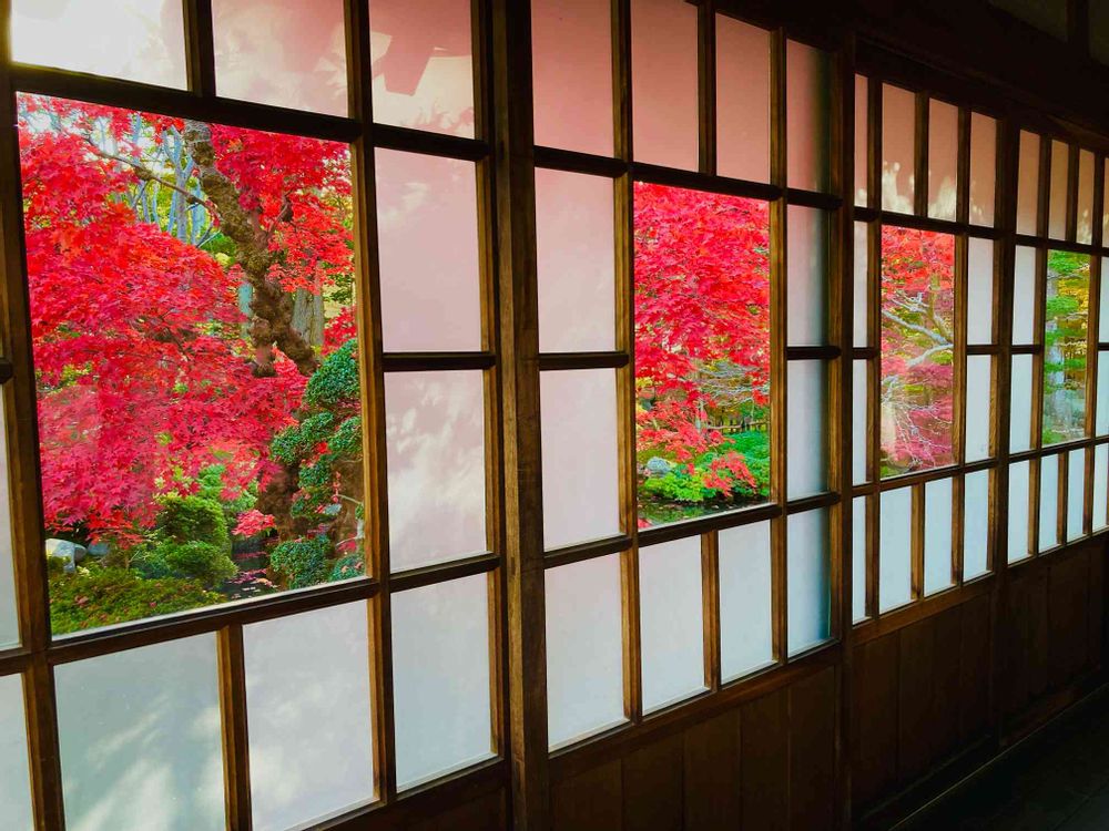 障子の明かり取りからの紅葉は、とっても綺麗ですね😉💕🍁🍁
