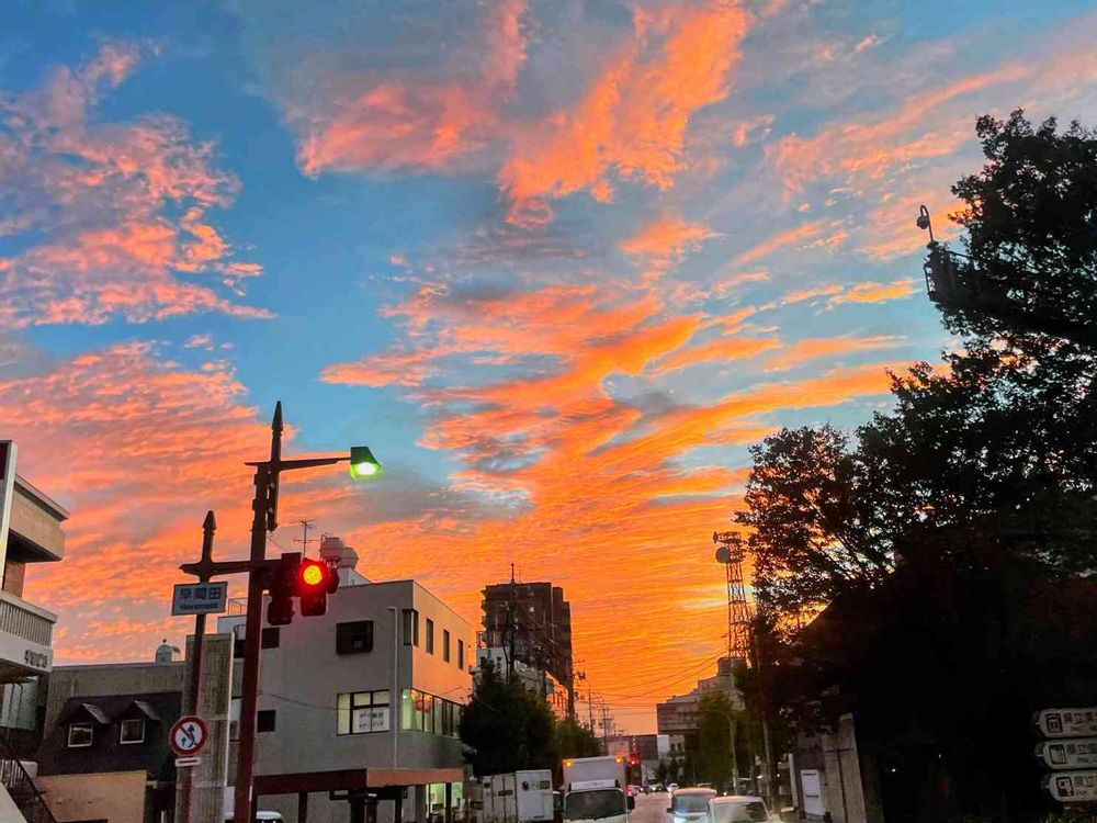 空の水色と雲のオレンジ色の対比が面白い💙🧡