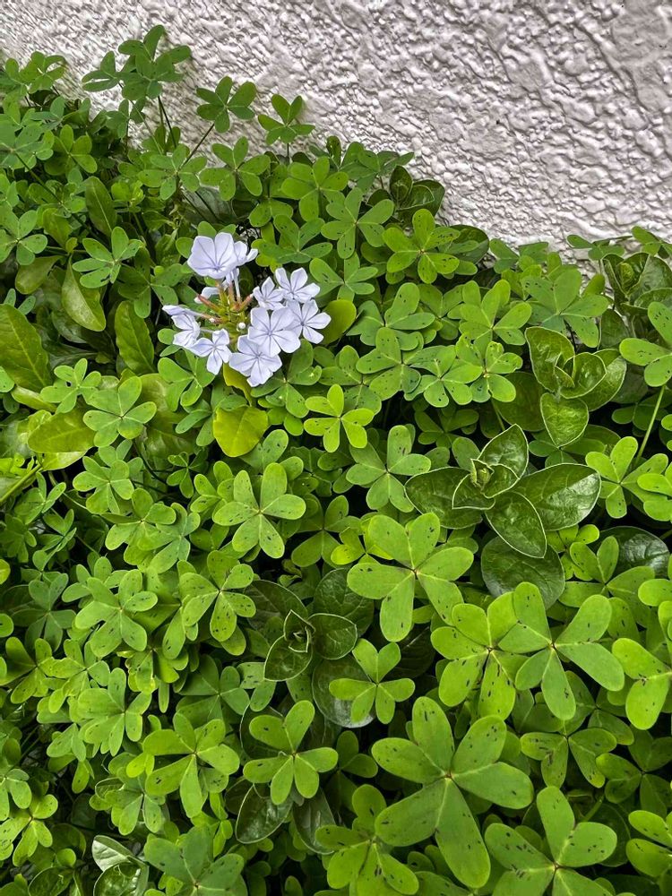 コンボルブルスからオキザリスへと交代中の花壇では、この夏に参戦したルリマツリが、やや色が薄く小ぶりですが咲いています💙😚