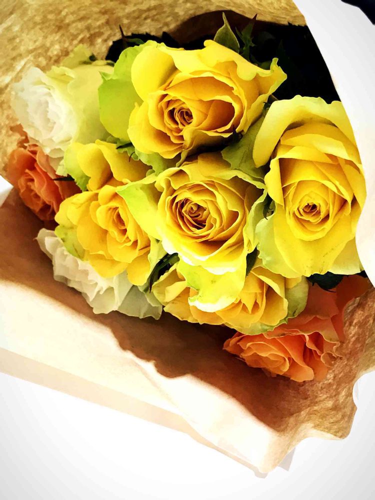 バラノハナタバ ~ 雨上がって陽が差して来たここらあたり。昨日、今日と白いスニーカーでの出勤。お客様から雨の日に白い靴で…。と言われましたが連日の雨で革靴が可愛そうなことになってまして止むを得ずなんです…。今週はもう雨大丈夫かね?先程、花いただきました。五月のバラ。ありがとうございます。🌹🌹🌹
