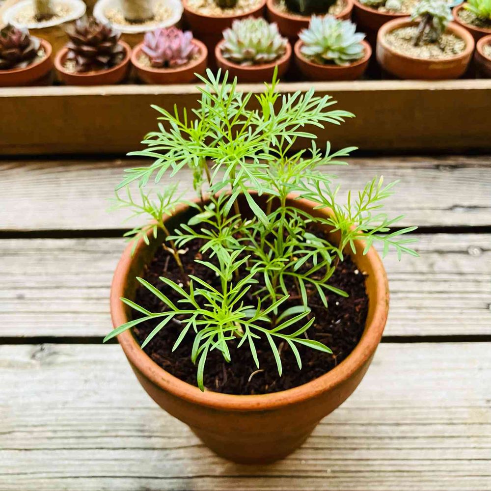 ベビーコスモス、二葉から本葉へ、コスモスらしくなって来た。
